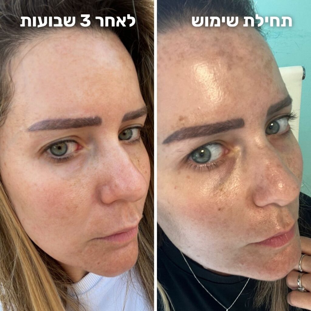 ״אני מטפלת בפיגמנטציה כבר שנים ובחיים לא עזר לי כלום. כולל את החברות היקרות והמוכרות בשוק. הסנטר שלי קבוע מפוצץ באדמומיות ובפצעים שלא נרגעים בחיים ופתאום הכל נרגע. והפיגמנטציה ממש מתבהרת אצלי תוך 3 שבועות של שימוש. אנשים מסביבי ממש שמים לב לשינוי בפנים״ שירן ט.