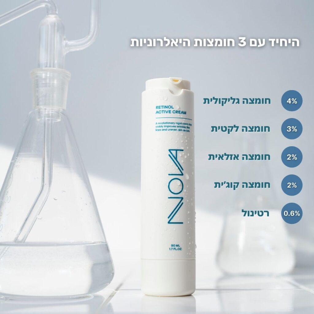 חברות קוסמטיקה אחרות לא רוצות שתדעי: שלא כל קרם רטינול, הוא קרם רטינול אמיתי. מרבית תכשירי הרטינול בשוק מבוססים על רטינאל – נגזרת חלשה יותר של ויטמין A – לעומת קרם הרטינול של נובה המתבסס על רטינול עוצמתי ואיכותי; מה שהופך אותו לחזק בכ-20% יותר מקרמים אחרים. המשמעות עבורך? עור פנים חלק, אחיד וזוהר, בזמן קצר יותר (30 ימים לתוצאה חיובית ראשונית).