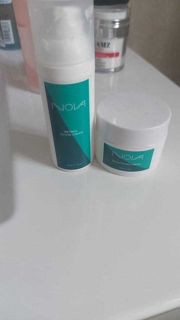 רכשתי את כל המוצרים של נובה,החל מסבון פנים, ערכת לילה לפיגמנטציה,קרם פנים,סרומים וקרם הגנה. מוצרים מעולים.ממליצה מאוד אני בת 41 אחרי הרבה נסיונות של הרבה חברות יקרות מאוד אפילו…רק התחלתי אבל הסבון נעים ולא מייבש את העור בכלל,משאיר עור חלק ונעים. הקרמים נספגים מעולה ולא משאירים מראה שמנוני.בעלי מרקם נעים ומשי.